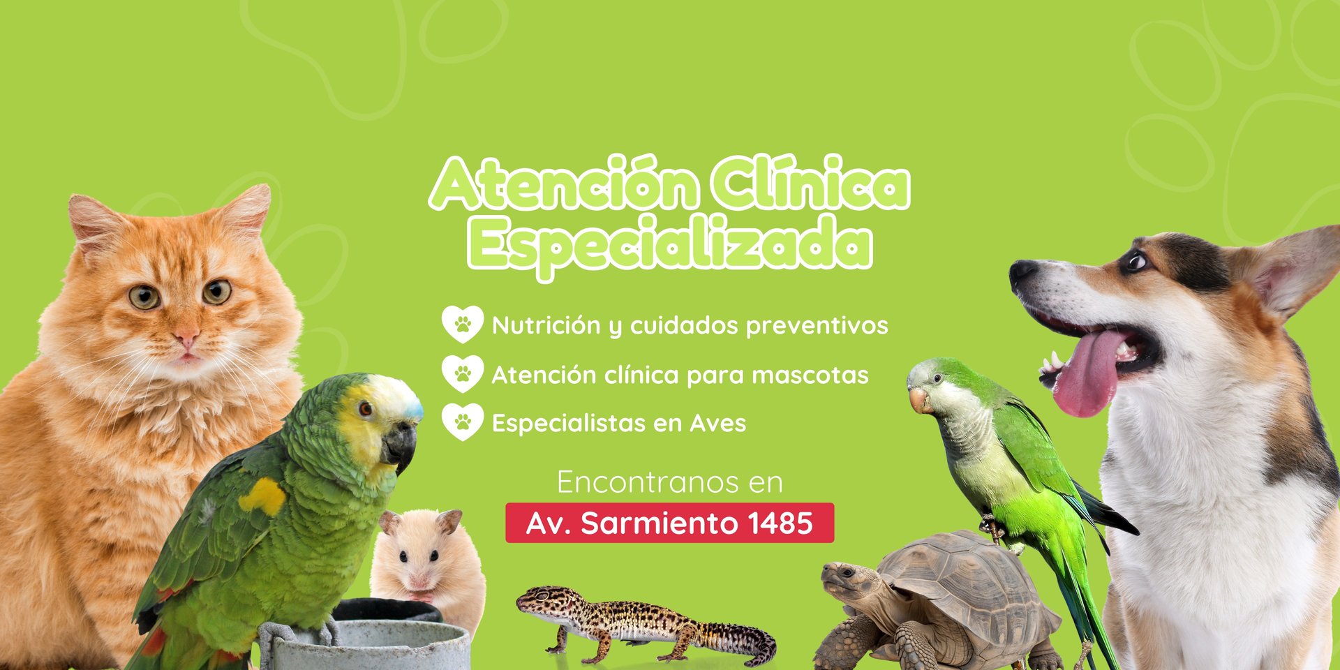 Veterinaria especializada en atención clínica, y Petshop para mascotas convencionales y no convencionales.